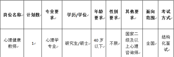 根據(jù)我院工作需要,經(jīng)學院研究,請示市人社局同意,現(xiàn)調整心理健康教師崗位要求,補充公告如下: