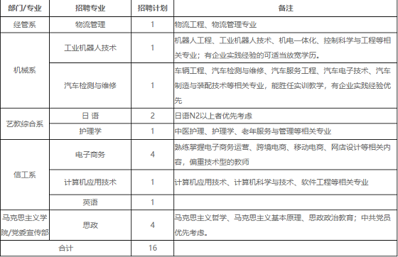 信陽涉外職業(yè)技術(shù)學院是經(jīng)河南省政府批準、國家教育部備案的全日制高等職業(yè)?圃盒#饕嫦驀H和國內(nèi)人才市場培養(yǎng)技能型、管理型和創(chuàng)業(yè)型人才,學院是全國出國就業(yè)教育培訓示范基地、河南省赴韓國就業(yè)考試和派遣中心,教育部JLPT日本語能力測試考點,河南省高校思想教育優(yōu)秀品牌院校。為滿足學院發(fā)展需要,現(xiàn)面向社會公開招聘16名專任教師。招聘方案如下: