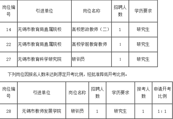 根據(jù)《2021年無錫市教育局直屬院校(單位)引進(jìn)優(yōu)秀青年人才公告(一)》規(guī)定,經(jīng)無錫市人力資源和社會保障局批準(zhǔn),下列崗位因無人報名,直接取消招聘計劃。