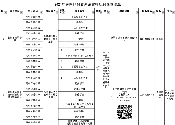 附件1:2021年崇明區(qū)教育系統(tǒng)教師招聘崗位簡章