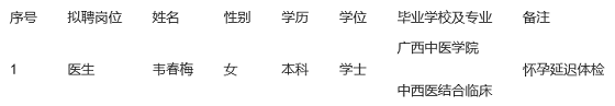 根據(jù)《廣西壯族自治區(qū)事業(yè)單位公開招聘人員實施辦法》(桂人社發(fā)〔2011〕155號)、《關于進一步規(guī)范區(qū)直事業(yè)單位公開招聘工作的通知》(桂人社辦發(fā)〔2013〕135號)和《廣西安全工程職業(yè)技術學院2020年度公開招聘非實名人員控制數(shù)公告》等文件精神,通過筆試、面試、考核、體檢等程序,經(jīng)學院黨委研究決定,經(jīng)學院黨委研究決定,擬確定韋春梅同志為聘用人選,現(xiàn)將人員基本情況予以公示,公示期為7個工作日(2020年12月24日至2021年1月4日)。