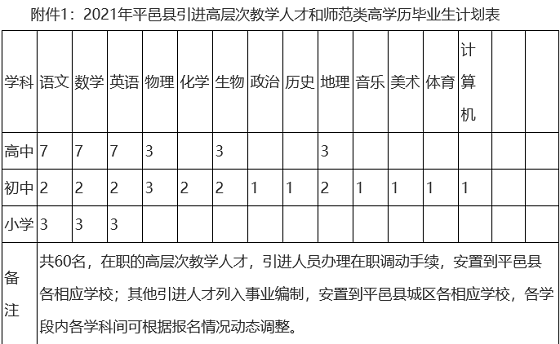 附件:1.2021年平邑縣引進(jìn)高層次教學(xué)人才和師范類(lèi)高學(xué)歷畢業(yè)生計(jì)劃表