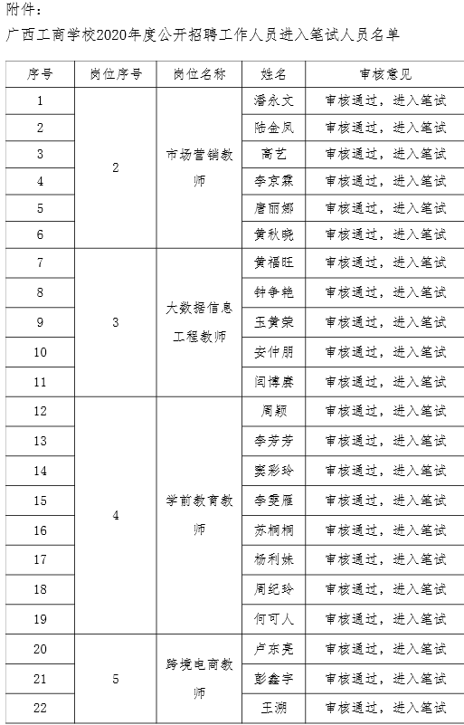 附件:廣西工商學(xué)校2020年度公開招聘工作人員進(jìn)入筆試人員名單