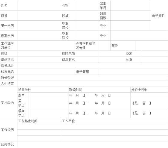 1.請在下方下載《許昌北大培文學(xué)校教師招聘登記表》,填寫完后,發(fā)送至學(xué)校郵箱xcbdpwxx@163.com(文件名標注為:本科+北京師范大學(xué)+漢語言文學(xué)教育+張凱麗)。
