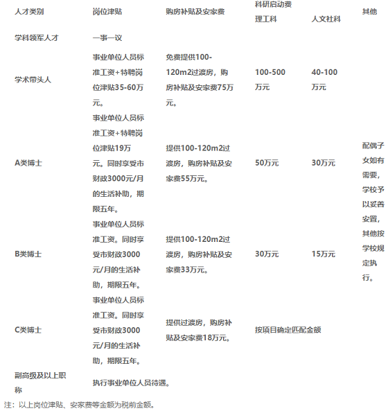 學(xué)科領(lǐng)軍人才和學(xué)術(shù)帶頭人根據(jù)學(xué)科建設(shè)和師資隊伍建設(shè)需要,堅持一事一議、特事特辦的原則,采用剛?cè)峤Y(jié)合的引進方式,如以團隊形式引進,團隊成員按照學(xué)校相應(yīng)的引進人才標(biāo)準(zhǔn)兌現(xiàn)待遇,并根據(jù)團隊建設(shè)需要,提供科研平臺、儀器設(shè)備等建設(shè)經(jīng)費。