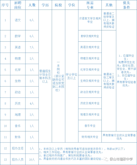 網(wǎng)上報名,關(guān)注保山市瑞積中學微信公眾號下載并填寫《2021年保山瑞積中學招聘教師報名表》,并將電子材料發(fā)至郵箱:bsrjzx001@163.com。(郵件名:姓名+文化程度+畢業(yè)學校+專業(yè)+應聘學科+應屆或在職)