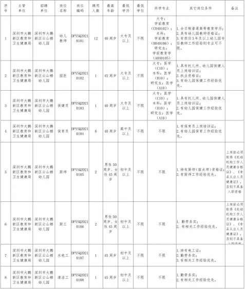 附件1 大鵬新區(qū)云山棲幼兒園2021年公開招聘編外人員崗位表.docx