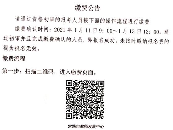 繳費(fèi)確認(rèn)時(shí)間:2021年1月11日9:00~1月13日12:00。通過(guò)初審并且完成繳費(fèi)確認(rèn)的人員,即報(bào)名成功。未按時(shí)繳納報(bào)名費(fèi)的視為報(bào)名無(wú)效。