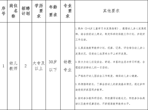 2.熱愛幼教工作,具有愛心和責(zé)任心,具有大局意識和團(tuán)隊協(xié)作精神,具有較強的履行崗位職責(zé)所需的專業(yè)知識與能力。