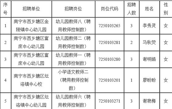 附件:南寧市西鄉(xiāng)塘區(qū)2020年中小學(xué)、幼兒園公開招聘教師擬錄用人員名單
