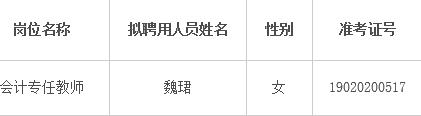 根據(jù)《2020年株洲市市直事業(yè)單位公開(kāi)招聘(選調(diào))工作人員公告》及有關(guān)規(guī)定,經(jīng)過(guò)報(bào)名、資格審查、筆試、資格復(fù)審、試講、體檢、考察等程序,經(jīng)學(xué)校黨委會(huì)研究,確定魏珺同志為2020年湖南汽車工程職業(yè)學(xué)院公開(kāi)招聘工作人員擬聘用人選,現(xiàn)予以公示。