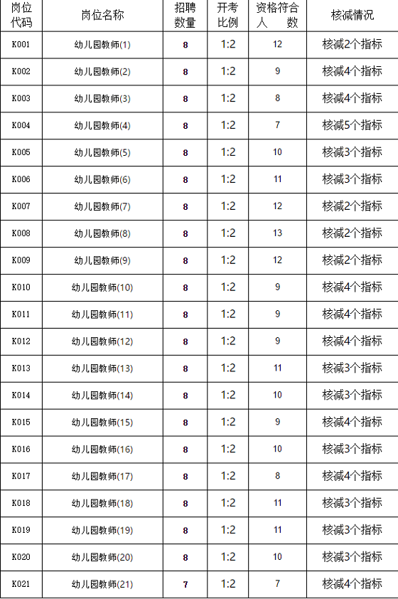 根據(jù)《2021年昆山市教育系統(tǒng)公開招聘幼兒園備案制教師簡章》規(guī)定,經(jīng)網(wǎng)上報名和資格確認(rèn),現(xiàn)擬對部分未達(dá)開考比例的崗位進(jìn)行招聘指標(biāo)核減。