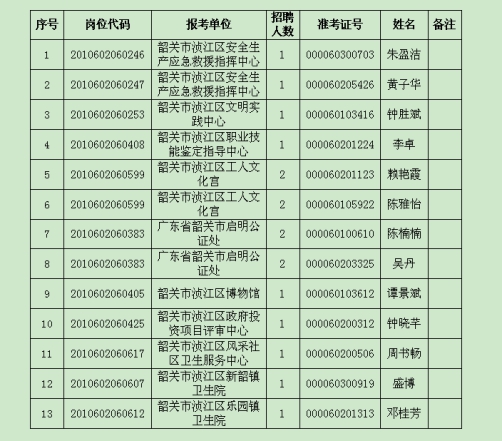 根據(jù)《廣東省事業(yè)單位2020年集中公開招聘高校應(yīng)屆畢業(yè)生工作的通知》,經(jīng)報(bào)名、筆試、資格審查、面試、體檢、考察等工作程序,擬聘用朱盈潔等13名同志為我區(qū)有關(guān)事業(yè)單位工作人員,現(xiàn)予以公示。具體名單如下: