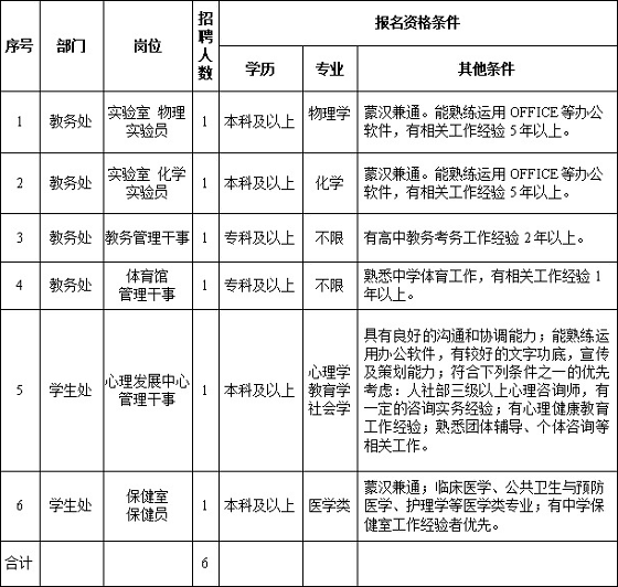 附表1:內蒙古師范大學附屬中學公開招聘2021年編制外校內備案制工作人員崗位需求表