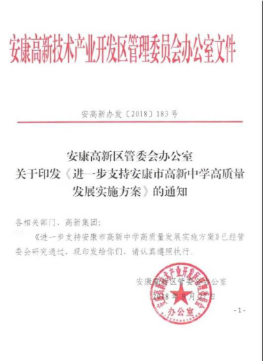 安康高新中學(xué)是經(jīng)市教育局批準成立,由安康市龍翔教育興業(yè)有限公司投資7.3億元興建的一所民辦寄宿制完全中學(xué)。學(xué)校占地165畝,總建筑面積16萬平方米。在各級政府和教育主管部門的關(guān)心支持下,學(xué)校迅速發(fā)展。目前共有131個教學(xué)班,在校學(xué)生近6000余人。專任教師400余名,省市級教學(xué)能手45名,其中60%的教師畢業(yè)于教育部直屬六所師范院校,40%的教師擁有碩士學(xué)位。