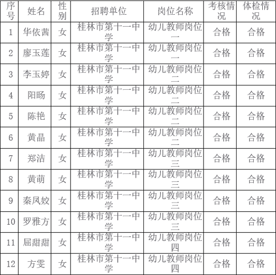 桂林市教育局公開招聘幼兒園教師擬聘用人員名單