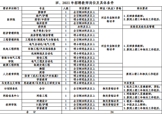 四、2021年招聘教師崗位及具體條件