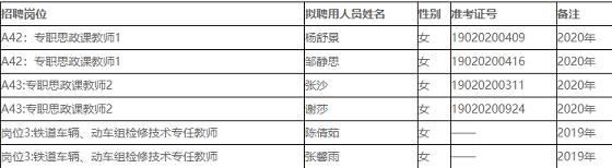 根據(jù)《2019年下半年湖南鐵路科技職業(yè)技術(shù)學(xué)院“985”“211”高校公開招聘公告》、《2020年株洲市市直事業(yè)單位公開招聘(選調(diào))工作人員公告》及有關(guān)規(guī)定,經(jīng)報名、資格審查、筆試、面試、體檢、考察等程序,經(jīng)湖南鐵路科技職業(yè)技術(shù)學(xué)院黨委會研究,確定楊舒景等6名同志為2020年湖南鐵路科技職業(yè)技術(shù)學(xué)院公開招聘擬聘用人選,現(xiàn)予以公示。
