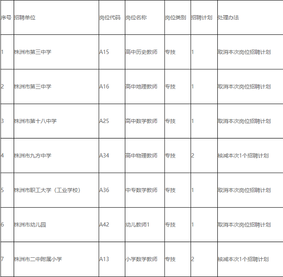 株洲市教育局直屬學(xué)校2021年面向高校應(yīng)屆畢業(yè)生公開招聘取消或核減崗位招聘計(jì)劃情況公告