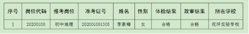 根據(jù)《韶關(guān)市湞江區(qū)2020年“丹霞英才”教育教學(xué)類暨中小學(xué)、幼兒園教師公開招聘公告》等有關(guān)規(guī)定,經(jīng)報(bào)名、資格審查、筆試、面試、體檢、考察等工作程序,擬聘用李素梅同志。詳細(xì)信息如下: