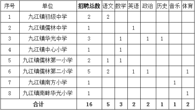 備注:以上招聘對象不含九江鎮(zhèn)各學(xué)校在職鎮(zhèn)聘教師。