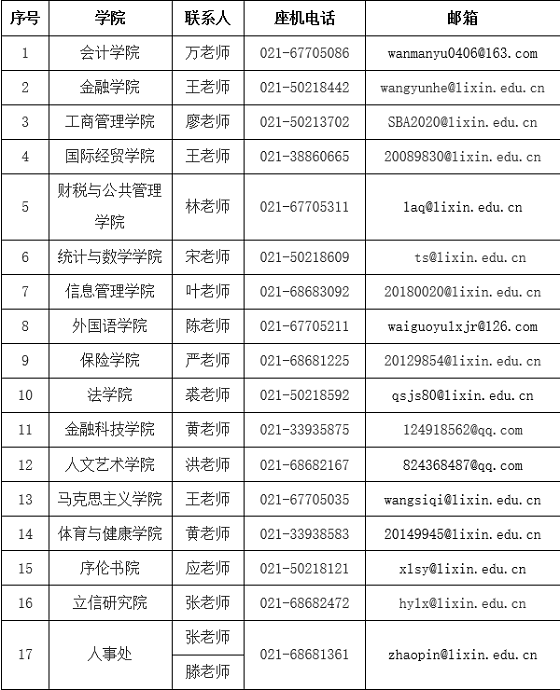 五、相關(guān)學(xué)院及人事處聯(lián)系方式