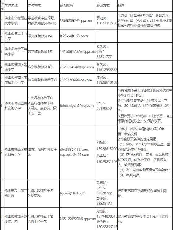 1.應(yīng)聘公辦學(xué)校臨聘教師職位須具備禪城區(qū)教育局臨聘教師入庫(kù)人員資格;