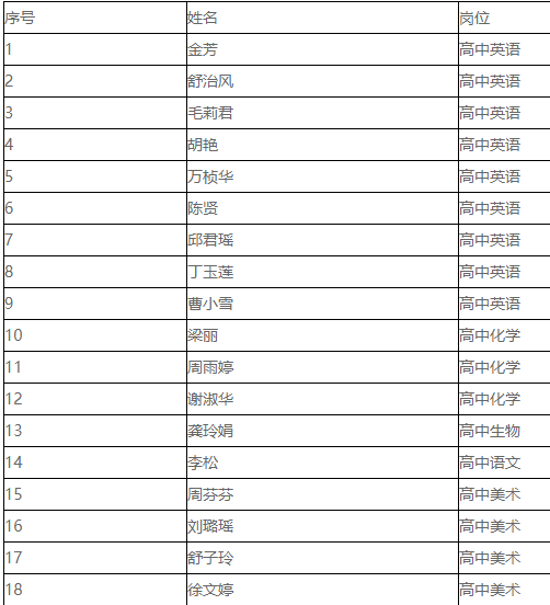 根據(jù)《進賢縣2020年第二批引進高層次人才招聘》公告,公開招聘報名、資格審查、面試、體檢、政審等工作已結(jié)束,現(xiàn)將擬聘人員予以公示。公示期自2021年2月3日至2021年2月10日。如對擬聘用人員有異議,請于公示期內(nèi)實名反映,對匿名來電、來函等不予受理。