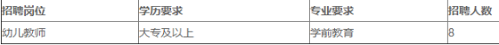 因發(fā)展需要,現(xiàn)向社會公開招聘幼兒園教師8名,熱誠歡迎優(yōu)秀人才加盟。