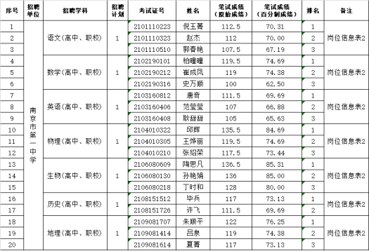 根據(jù)《2021年南京市教育局直屬學(xué)校公開(kāi)招聘教師公告》(寧事招公告(R)﹝2021﹞1號(hào))要求,現(xiàn)將進(jìn)入資格復(fù)審的考生名單(詳見(jiàn)附件)予以公布。資格復(fù)審時(shí)間另行通知。