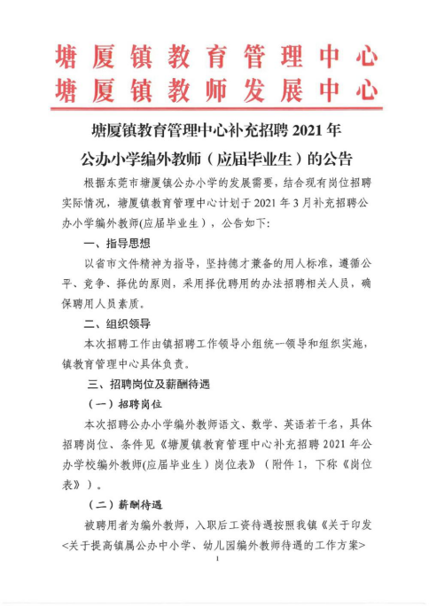 附件1 塘廈鎮(zhèn)教育管理中心補(bǔ)充招聘2021年公辦學(xué)校編外教師(應(yīng)屆畢業(yè)生)崗位表.xls