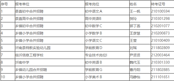 2020年沂南縣教育系統(tǒng)部分事業(yè)單位公開招聘教師工作,經(jīng)過筆試、面試、考察和體檢等環(huán)節(jié),現(xiàn)將第五批擬聘用人員進行公示(見附件)。
