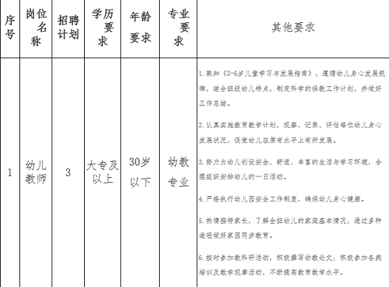 2.熱愛幼教工作,具有愛心和責(zé)任心,具有大局意識和團(tuán)隊(duì)協(xié)作精神,具有較強(qiáng)的履行崗位職責(zé)所需的專業(yè)知識與能力。
