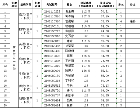 2021年江蘇南京市第一中學(xué)公開招聘教師進入面試考生名單