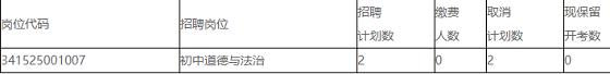 根據(jù)《2021年度霍山縣中小學(xué)新任教師公開招聘公告》規(guī)定:資格審查并網(wǎng)上繳費結(jié)束后,報考同一崗位的應(yīng)聘人數(shù)與招聘崗位計劃數(shù)之比不低于2:1。對不足規(guī)定開考比例的,取消或相應(yīng)核減該崗位計劃數(shù)。經(jīng)審定,現(xiàn)將報名繳費后達(dá)不到規(guī)定開考比例的初中道德與法治崗位招聘計劃核減情況予以公布。