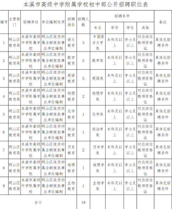 本溪市高級中學(xué)附屬學(xué)校是本溪市明山區(qū)的重點(diǎn)民生保障工程,也是明山區(qū)人民政府重點(diǎn)保障的樣板工程。本溪市高級中學(xué)附屬學(xué),F(xiàn)面向東北師范大學(xué)、遼寧師范大學(xué)、吉林師范大學(xué)、沈陽師范大學(xué)、渤海大學(xué)應(yīng)屆畢業(yè)生公開招聘,享受明山區(qū)公辦教師工資和福利待遇,學(xué)校也將為外地單身教師解決住宿問題。