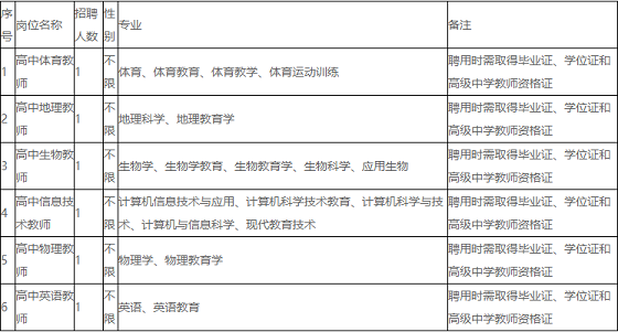 5.應(yīng)聘體育教師者應(yīng)獲得籃球或排球?qū)m?xiàng)國家二級運(yùn)動(dòng)員稱號以上;應(yīng)聘英語教師者應(yīng)具有專業(yè)八級證書;應(yīng)聘生物、地理、信息技術(shù)、物理教師者,專業(yè)必修課成績應(yīng)在80分以上。