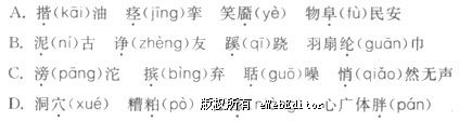(1)下列詞語中,加點(diǎn)的字的讀音全都正確的一組是( )。