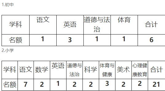 計劃招聘新任教師27名,其中初中教師6名、小學教師21名。具體崗位如下: