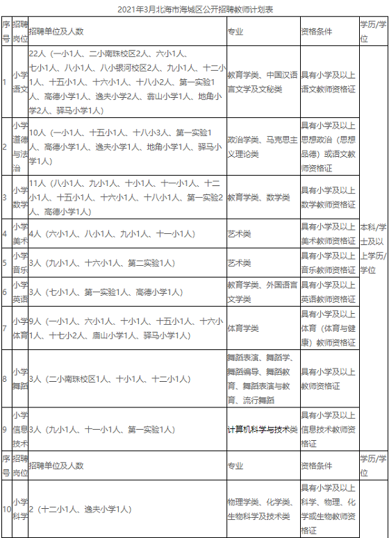 1.北海市海城區(qū)2021年3月公開(kāi)招聘教師計(jì)劃表