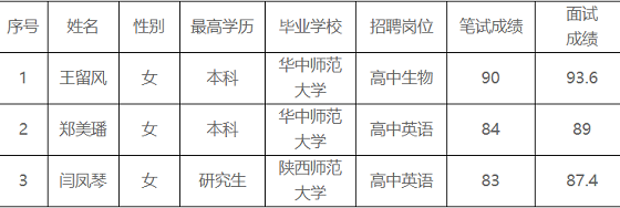 2021年湘潭市一中教育集團(tuán)引進(jìn)教育部直屬師范院校畢業(yè)生筆試面試工作已經(jīng)結(jié)束,現(xiàn)將成績(jī)公布如下: