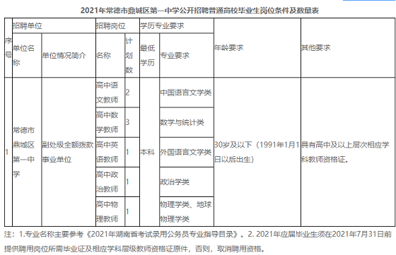 附件:2021年常德市鼎城區(qū)第一中學(xué)公開(kāi)招聘普通高校畢業(yè)生崗位條件及數(shù)量表