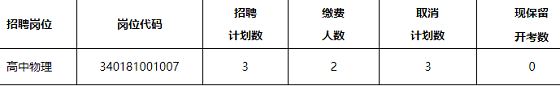 2021年巢湖市中小學新任教師公開招聘考試報名經前期網上資格初審和繳費確認,現有“高中物理”崗位(崗位代碼340181001007)因達不到開考比例,按公告規(guī)定取消招聘計劃。