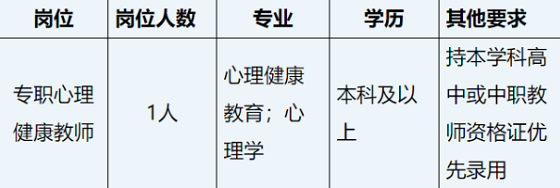因?qū)W校教育教學(xué)發(fā)展需要,根據(jù)《福建省事業(yè)單位公開招聘人員暫行辦法》規(guī)定,晉江市晉興職業(yè)中專學(xué)校決定面向社會公開招聘一名專職心理健康教師,現(xiàn)將有關(guān)事項公告如下: