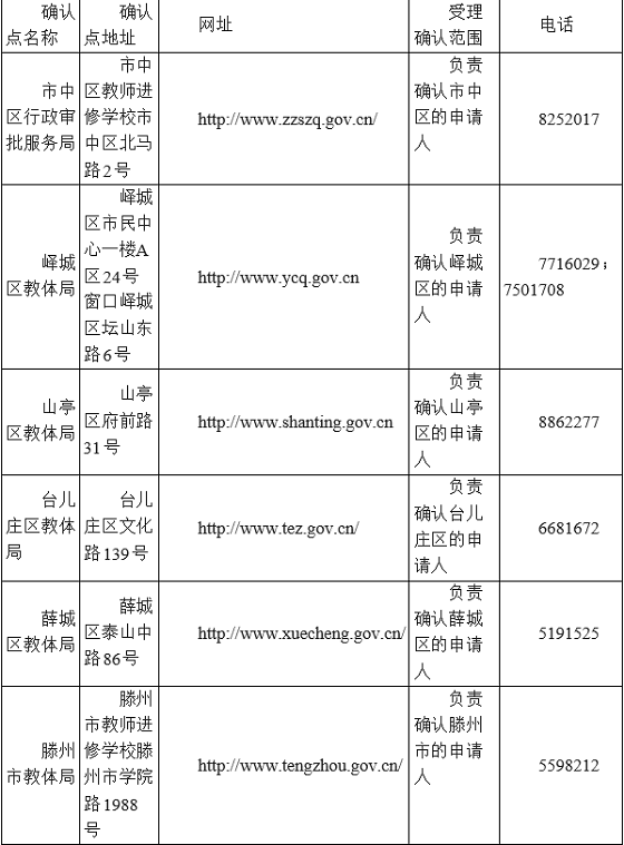 各類(lèi)教師資格申請(qǐng)人網(wǎng)報(bào)后,應(yīng)按規(guī)定時(shí)間到網(wǎng)報(bào)時(shí)選擇的確認(rèn)點(diǎn)進(jìn)行現(xiàn)場(chǎng)審核確認(rèn)。各確認(rèn)點(diǎn)信息如下表: