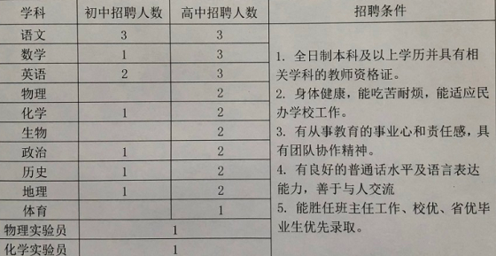 著眼于學校進一步發(fā)展,即日起,學校將面向全國招聘初中、高中各學科老師。