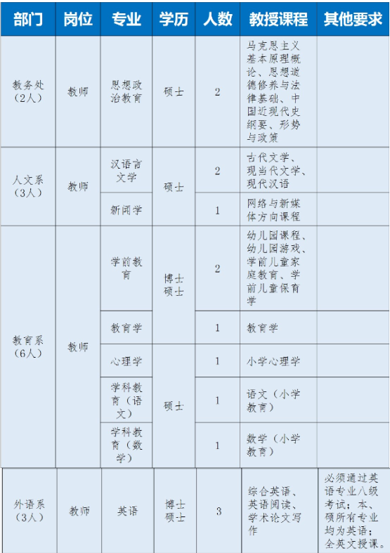 (一)政治立場堅定,熱愛教育事業(yè);具有良好的品行和職業(yè)道德,身心健康;責(zé)任心強,能勝任工作崗位要求。