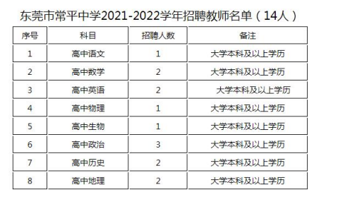 為適應(yīng)東莞市教育事業(yè)發(fā)展需要,2021年繼續(xù)擴(kuò)大辦學(xué)規(guī)模,現(xiàn)面向全國(guó)招聘教師25人,985院校、教育部直屬師范院校、211雙一流院校以及研究生以上學(xué)歷者優(yōu)先。入職時(shí)間為2021年9月,一年后,表現(xiàn)優(yōu)秀者,優(yōu)先推薦參加市統(tǒng)一招聘入編。招聘崗位表如下:
