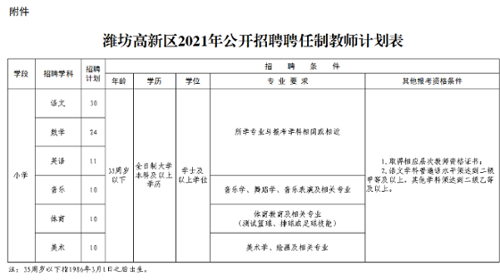 附件:濰坊高新區(qū)2021年公開招聘聘任制教師計劃表