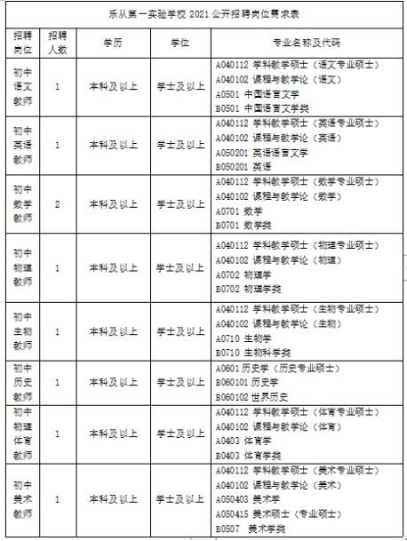 根據(jù)《廣東省事業(yè)單位公開(kāi)招聘人員辦法》(省府令第139號(hào))和《2021年順德區(qū)公辦中小學(xué)面向社會(huì)公開(kāi)招聘教師公告》,結(jié)合我校師資需求缺口實(shí)際,現(xiàn)就順德區(qū)樂(lè)從第一實(shí)驗(yàn)學(xué)校(初中部)2021年面向社會(huì)公開(kāi)招聘教師公告如下:
